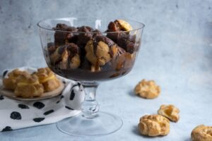 - Az égetett tésztából apró fánkocskákat sütünk.