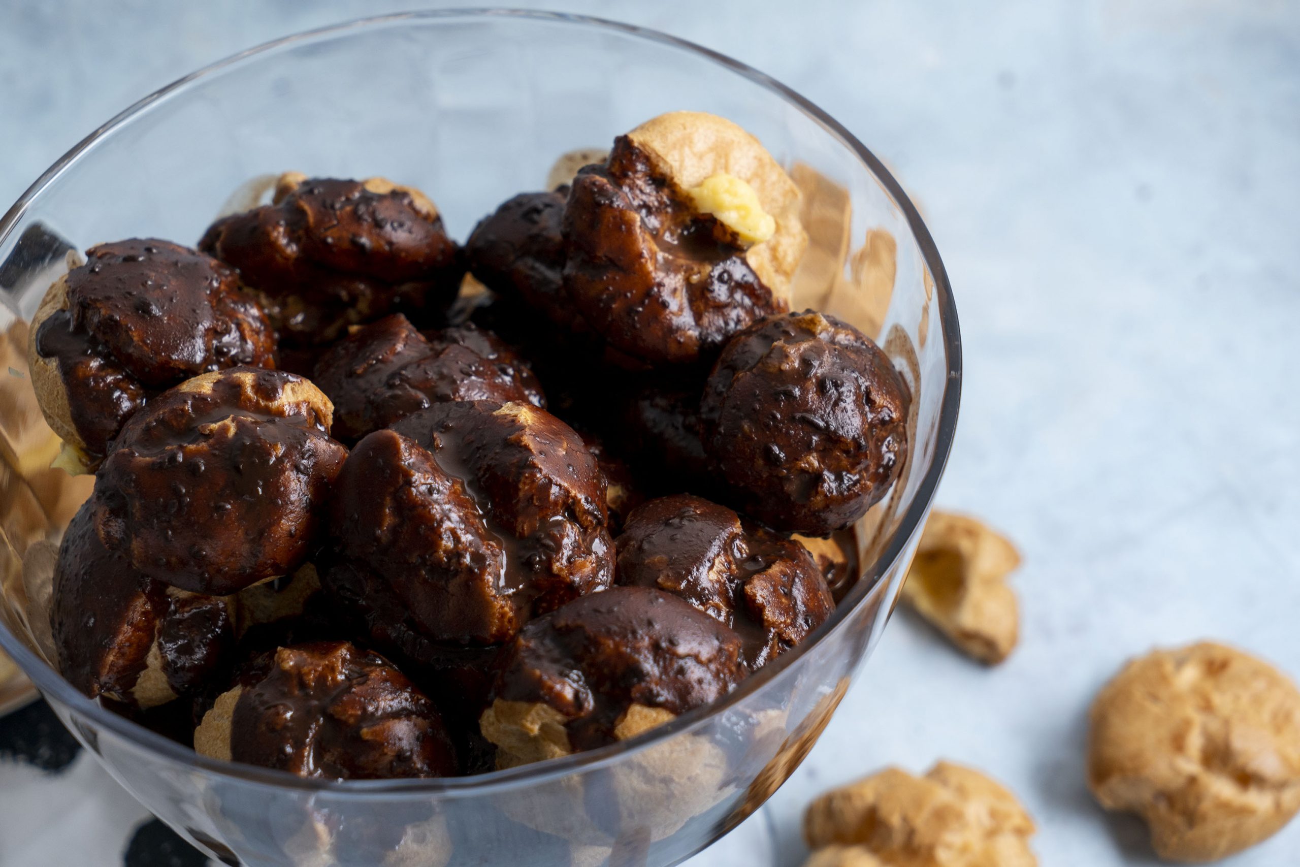 - Az égetett tésztából apró fánkocskákat sütünk.